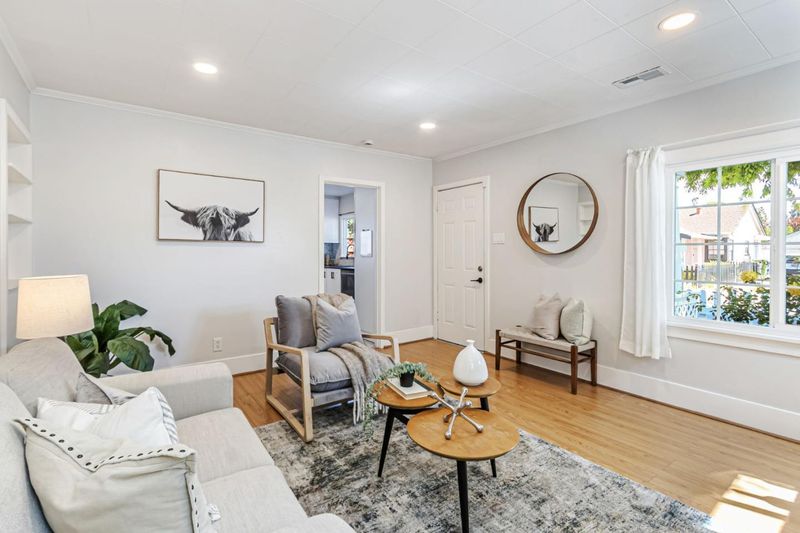 Welcome to 2473 Olive Ave, centrally located in the heart of Silicon Valley. This updated 2BD/1BA home blends charm and modern function. The remodeled kitchen features a waterfall quartz peninsula, pantry, and newer appliances. The living room includes a smart controlled electric fireplace, and the primary bedroom offers a custom California Closets system. Additional highlights include smart lighting, Google Nest with Flair room by room temperature control, blackout shades in all bedrooms, a separate laundry area, and an approx. 300 sq.ft. bright sunroom with its own smart mini split ideal for work or relaxation. Outdoors, enjoy a paver patio, 3+ private parking spaces including 2 under a carport with an electric gate, a backyard lounge area, powered shed, and gardens with fruit trees, vegetables, and herbs. Bonus features include a smart sprinkler system, doorbell, exterior cameras, and a walk in temperature controlled wine cellar. Close to Santana Row, Valley Fair, restaurants, coffee, hospitals, and the Diridon Train Station, with easy access to Hwy 880/280. Dont miss this remarkable San Jose home!