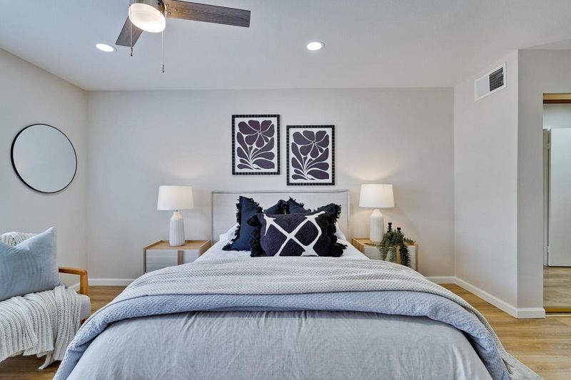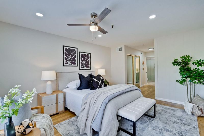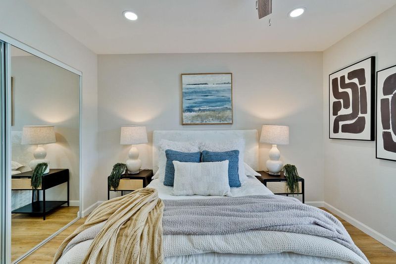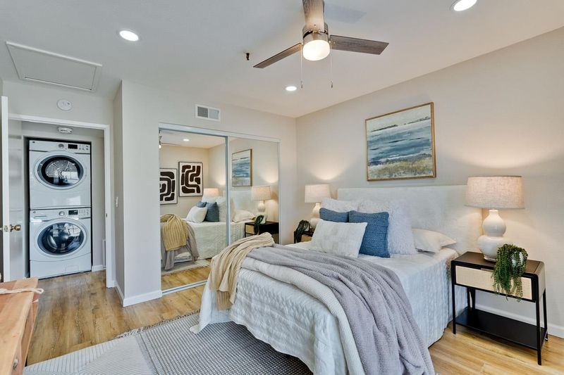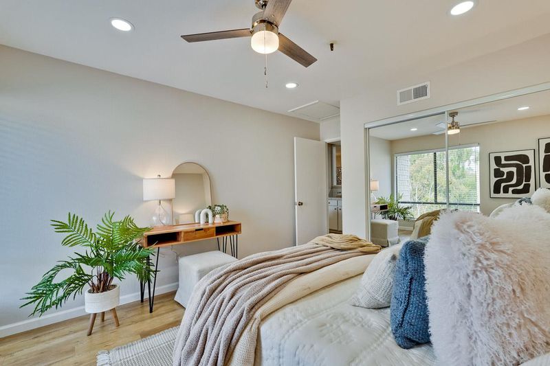 Stunning Penthouse Condo in the Sought-After Old Mill Community! Welcome to this top-floor residence offering 2 spacious bedrooms and 2 beautifully remodeled bathrooms across a single-level 1,206 sq. ft. floor plan. The thoughtfully updated kitchen features modern finishes, stainless steel appliances, and ample cabinetry. Additional highlights include central heating and air conditioning, elegant LED recessed lighting, in-unit laundry, and a private balcony with extra storage. Enjoy the convenience of a gated basement with an assigned parking space, plus all the benefits of a move-in ready home designed for comfort and style. This prime location offers access to highly rated Los Altos schoolsCovington Elementary, Egan Middle, and Los Altos High School (buyer to verify accuracy and enrollment). Everyday essentials are just minutes away with Target, Whole Foods, Trader Joes, Safeway, and Costco nearby, along with easy access to major tech campuses. Combining location, lifestyle, and modern upgrades, this penthouse condo is an exceptional opportunity in the heart of Silicon Valley.