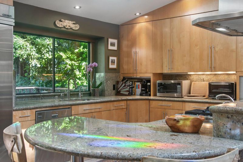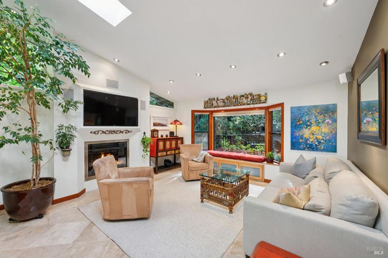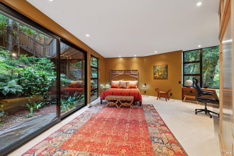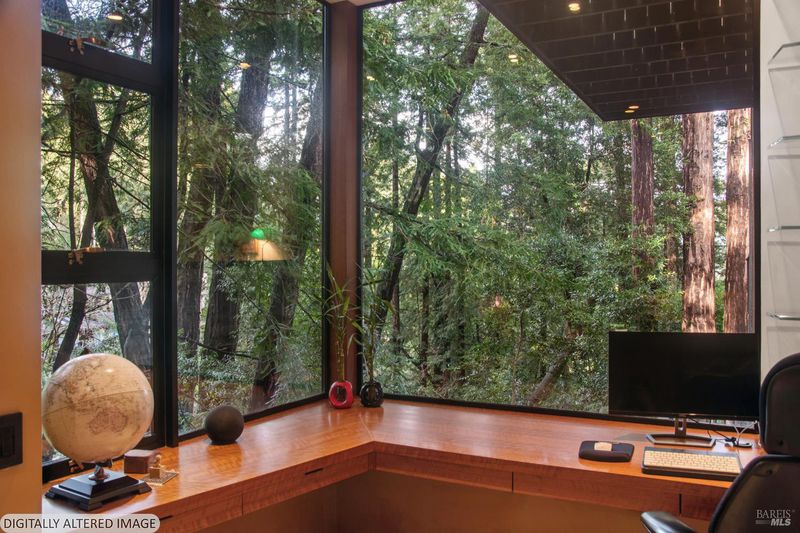 Set among towering redwoods on a quiet Mill Valley street, this one-of-a-kind home offers something rare: the feeling of living in a private forest retreat while staying moments from town, schools, parks, and daily conveniences. Thoughtfully designed with Zen-inspired outdoor spaces, two expansive decks, and treetop views from nearly every room, the home invites a slower, more connected way of living- morning coffee in the trees, family dinners under the canopy, and weekends filled with fresh air and adventure. A welcoming front deck leads into the main living level, where the living, dining, and kitchen spaces flow in an open-concept layout filled with natural light from oversized windows and skylights. The chef's kitchen features granite countertops, custom wood cabinetry, premium stainless appliances, and a generous island for gathering, homework, and casual meals. Rear deck access makes indoor-outdoor entertaining effortless. Downstairs, the private primary suite feels like a true sanctuary, opening to its own secluded deck. The newly renovated spa-style bath includes a deep porcelain soaking tub, heated shower floors, multiple shower heads, custom teak detailing, and a gray water diverter system that can nourish the surrounding redwoods. An additional bedrooms and a full bath complete this level, including a spacious and flexible third bedroom with a built-in office area, custom Murphy bed, generous storage, and floor-to-ceiling frameless windows and doors overlooking the terraced garden. A significant value-add: this property includes two parcels on a street-to-street lot (one APN), creating potential for an ADU with separate Florence Street accessideal for guests, extended family, an au pair suite, home office, or future income opportunity. With direct proximity to the iconic Dipsea Trail stairs, nearby parks, top-rated schools, and vibrant downtown Mill Valley, this home delivers an exceptional blend of privacy, elegance, and everyday livability for families who want both nature and community.