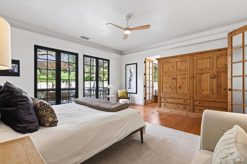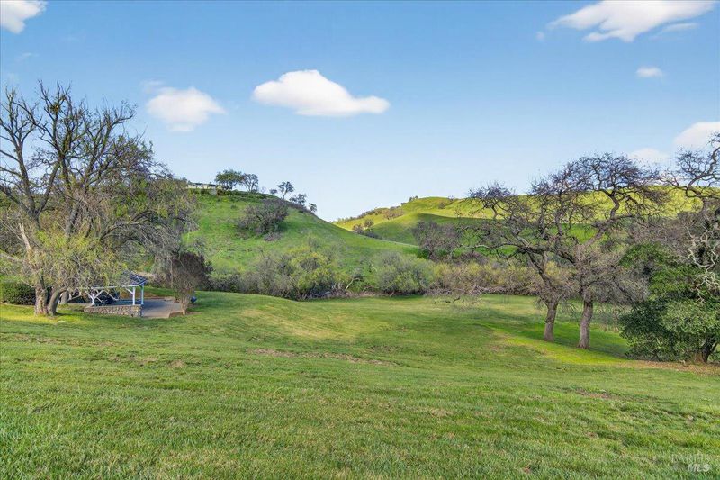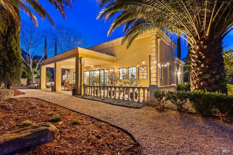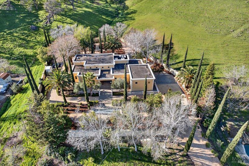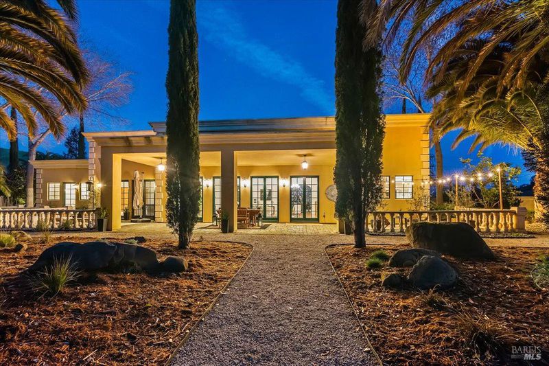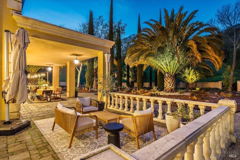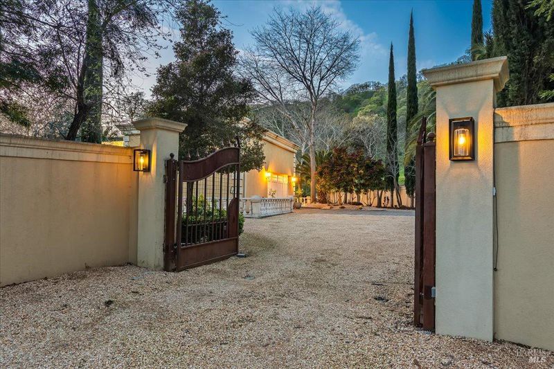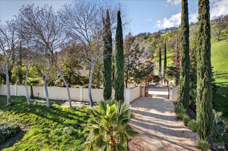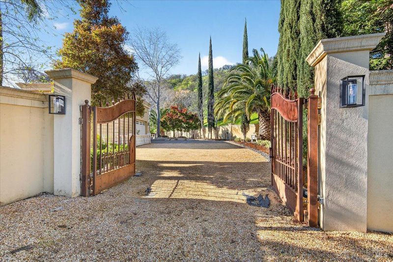 Blue Ridge Oaks Subdivision is an exclusive, gated enclave of custom estates in the highly desirable Fairfield Hills, celebrated for its privacy, natural beauty, and access to approximately 2,000 acres of shared open space. Residents enjoy miles of scenic trails for horseback riding, hiking, and mountain biking, a private shooting range, and rolling hills with grazing cattle, deer, and abundant wildlife. Set behind a custom private gate on three secluded acres, this elegantly designed Tuscan-Mediterranean villa offers a serene retreat surrounded by lush, mature gardens. A Bellagio-inspired fountain, beautifully illuminated for evening ambiance, serves as a stunning centerpiece and enhances the estate setting. A grand entry welcomes you into an open, light-filled floor plan accented by soaring ceilings and timeless architectural detail. Formal living and family rooms are anchored by a striking fireplace with custom mantel, ideal for both intimate gatherings and entertaining. A private library with dedicated office space offers versatility and may serve as a third sleeping area if desired. Rich wood flooring and Costa Esmeralda granite countertops extend throughout the home. The chef's kitchen is spacious and thoughtfully appointed with a Sub-Zero refrigerator, Viking range, farmhouse sink, and Medallion knotty alder cabinetry. French-style windows and exterior doors enhance the home's European character while framing tranquil garden views. The residence features two bedrooms and two bathrooms, including a luxurious primary suite designed as a private sanctuary with dual vanities, a custom-tiled walk-in shower, a classic claw-foot soaking tub, and a generous walk-in closet. An extended garage provides abundant space for a workshop, storage, or hobbies. The landscaped grounds offer room to expand or enhance outdoor living while preserving the peace and privacy of this remarkable setting. Ideally located between Fairfield and Vacaville and backing to the Napa Hills, the community includes shared ownership of recreational land with day-use access to horse arenas and pastures, and an easy commute to Napa Valley, San Francisco, and Sacramento.