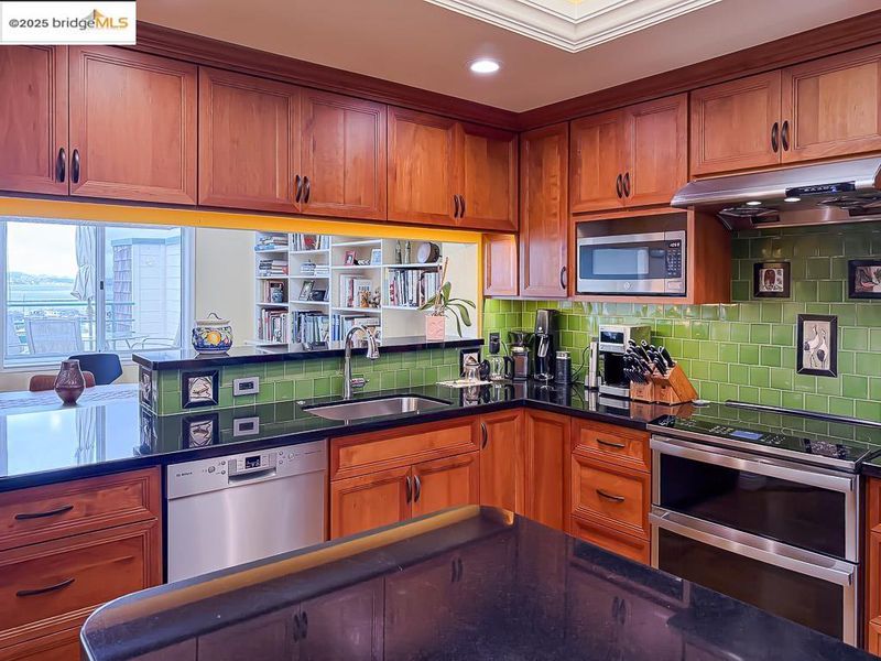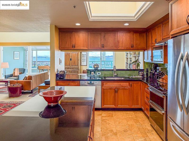 - Dishwasher, Electric Range, Microwave, Free-Standing Range, Self Cleaning Oven, Dryer, Washer, Stone Counters, Eat-in Kitchen, Electric Range/Cooktop, Disposal, Kitchen Island, Range/Oven Free Standing, Self-Cleaning Oven, Skylight(s), Updated Kitchen