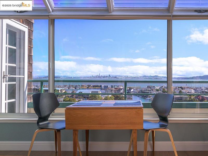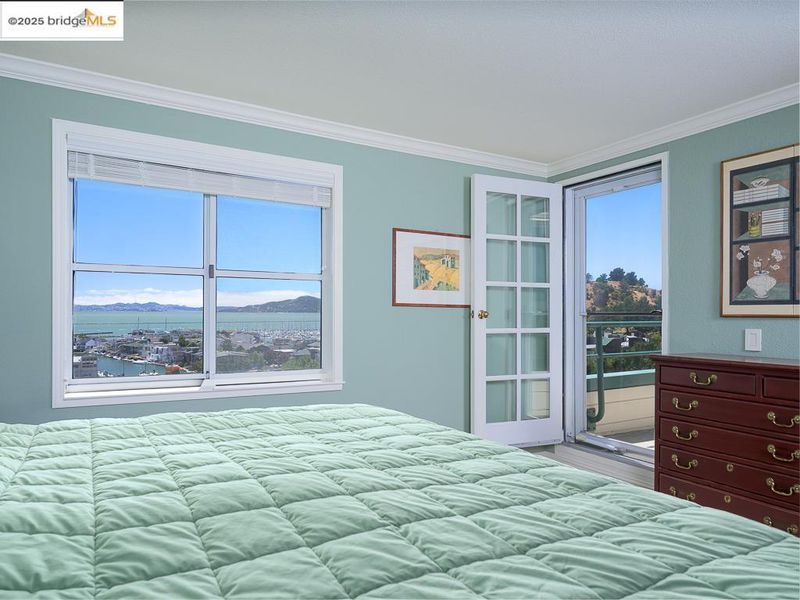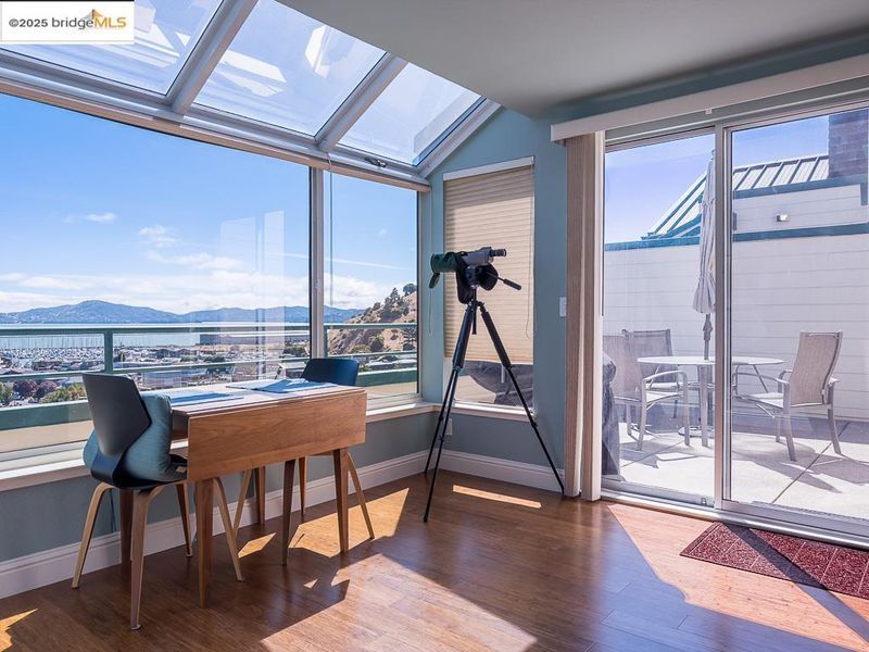 Turn on your sound and take a tour! https://youtu.be/qwxoZzt8AwI?si=ORoAToCqNPD07ip9 Experience magnificent, unobstructed views from this LARGE, fully remodeled, Penthouse II. Enjoy the quiet and privacy only available from a top floor condo! Clerestory windows, cathedral ceilings, and a skylight bathe this airy home in light. With 2 bedrooms, 2 full baths, den, solarium, eat-in kitchen, and deck, there is ample room for you and your guests. The home has been completely upgraded. Here are just SOME of the enhancements... using the highest quality materials, the kitchen and baths were gut-renovated and reconfigured to add light and storage. Custom built-ins were installed in the dining area and den. Flooring was replaced and crown molding added. There is a LARGE, private deck, perfect for entertaining or to enjoy a peaceful day in the sun. If the weather is less than perfect, spend time in the spacious solarium. Both provide amazing views of SF, Angel Island, Marin, and the Bay. Watch the Richmond Ferry as it makes its way to and from SF. If you're feeling more active, enjoy the resort-like facilities: year-round heated pool; gym; saunas; hot tub; tennis; pickleball, clubhouse, EV chargers, and community garden. 2 parking spaces and 2 storage lockers in the below-building garage