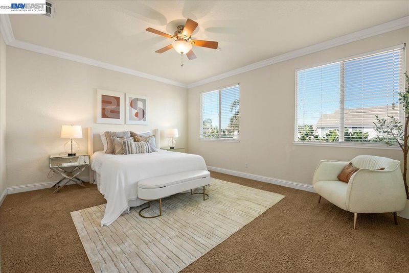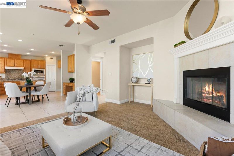 This stunning Brentwood home impresses from the moment you arrive, with beautiful curb appeal featuring a charming balcony, 3-car garage, and manicured front landscaping. Step inside to a soaring two-story foyer flooded with natural light, where an elegant staircase and built-in shelving welcome you home. The formal dining room with crown molding and chandelier sets the stage for memorable gatherings, while the open family room centered around a beautiful gas fireplace with tile surround and white mantle creates the perfect space for everyday living. The large kitchen features granite countertops, a center island, built-in appliances, and a casual dining nook with sliding glass doors opening directly to the backyard. Upstairs, a generous loft offers flexible bonus living space. The expansive primary suite is a true retreat, complete with dual vanities, soaking tub, separate shower, and a large walk-in closet. Additional bedrooms are spacious and well-appointed, with one featuring its own private balcony. The massive backyard delivers a stamped concrete patio, covered gazebo, lush lawn, tropical landscaping with palms and banana trees, and a storage shed — perfect for entertaining or relaxing outdoors. This home delivers comfort, style, and flexibility all in one place. Residents of the sought-after Rose Garden community enjoy resort-style amenities just steps from the front door — a junior Olympic pool, two neighborhood parks (Rose Garden & Medallion), gazebos, picnic areas, and scenic walking paths shaded by blossoming pear trees. Welcome home!