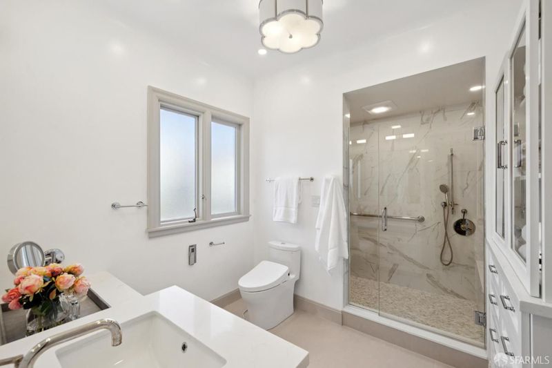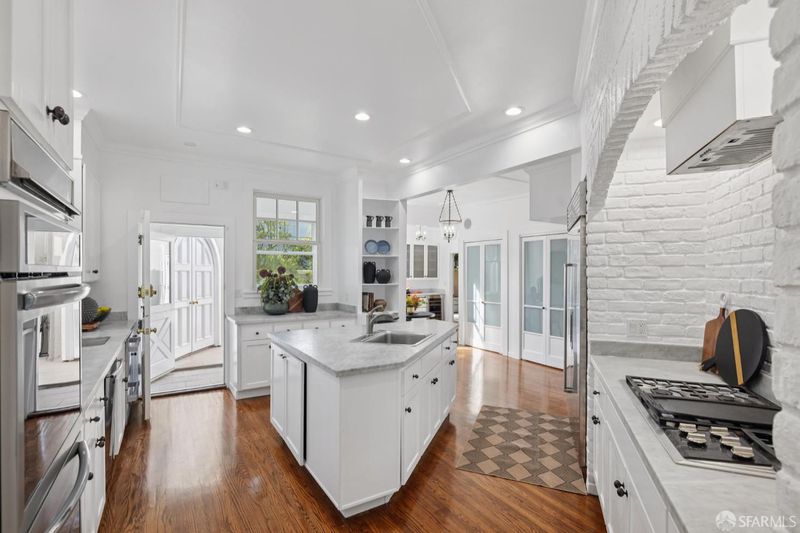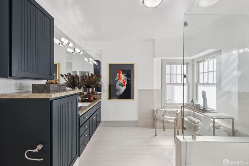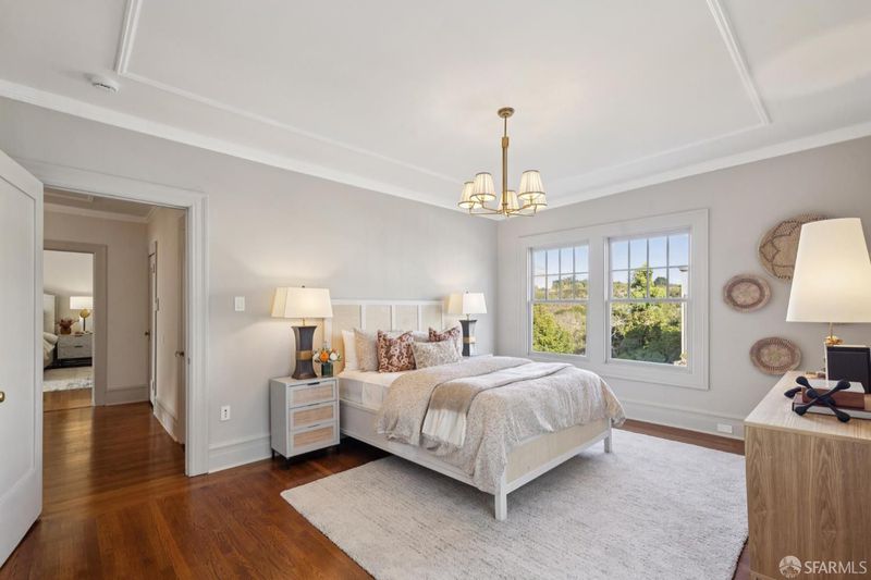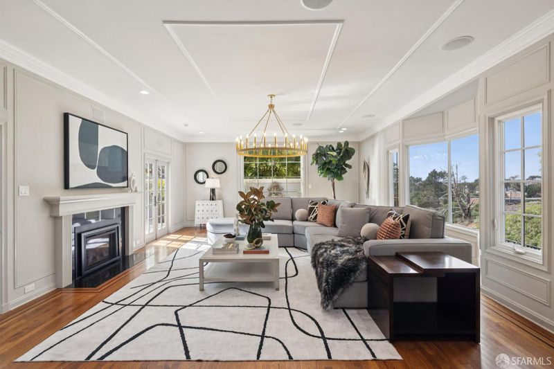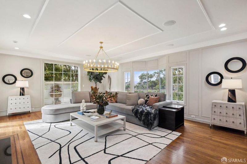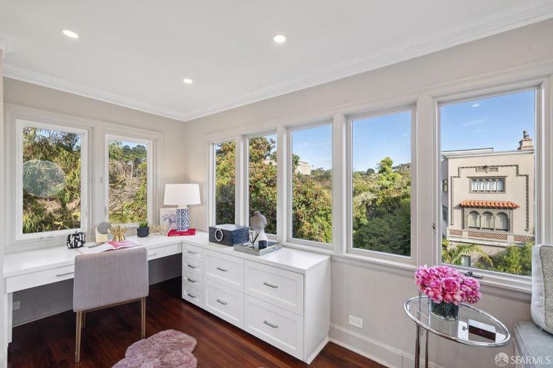 Tucked at the end of a quiet cul-de-sac along San Francisco's sought-after Lake Street corridor, this grand and private residence offers over 7500 square feet of sophisticated living space. Extensively updated and structurally enhanced, the home blends timeless architectural character with modern sustainability, including solar power, Tesla Powerwalls, and a swim spa set in a flat, turfed side yard perfect for entertaining. Designed for seamless indoor-outdoor flow, the home captures serene outlooks toward the Presidio and Lobos Creek. The main residence features four bedrooms and four-and-a-half baths across three levels, with grand entertaining rooms, elegant period details, and generous terraces. A legal two-bedroom unit with den, two baths, and separate laundry offers flexibility for guests, extended family, or income potential. Additional highlights include a private office, a flexible space with kitchenette and full bath, and an expansive lower-level play area with a children's structure. With parking for five or more cars and extensive storage, this one-of-a-kind Lake Street estate delivers the perfect balance of privacy, modern comfort, and understated luxury.