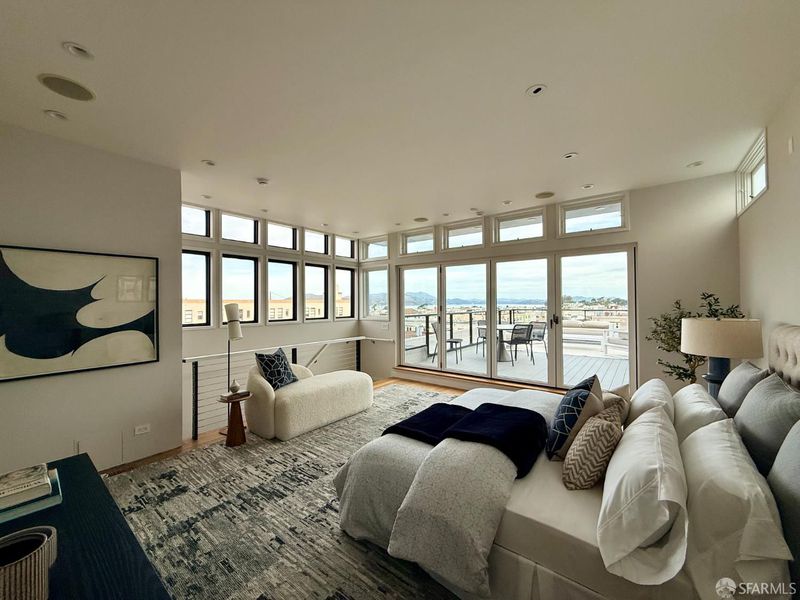 Stunning two-level Pacific Heights view condo, beautifully remodeled with extensive upgrades throughout. This bright, inviting home features a gourmet kitchen with a Viking range, Bosch dishwasher, and a brand-new LG refrigerator with ice maker and water dispenser, ideal for everyday living and entertaining. The upper level offers a spacious primary suite with a beautifully renovated bath, a generous walk-in closet, and sweeping Golden Gate Bridge views. A wall of French doors opens to an impressive walk-out deck, creating seamless indoor-outdoor living perfect for relaxing or hosting. The deck is also accessible via an exterior staircase. Major improvements include a fully updated electrical system, new roof, deck, sewer line, heater, and multiple renovated bathrooms. Additional highlights include new windows throughout, California Closets in every bedroom, an in-unit washer/dryer combo, a dedicated washer and dryer in the garage, and two-car parking. Enjoy a shared patio garden and a prime location just one block from downtown, with easy access to tech shuttle routes, shops, and dining.