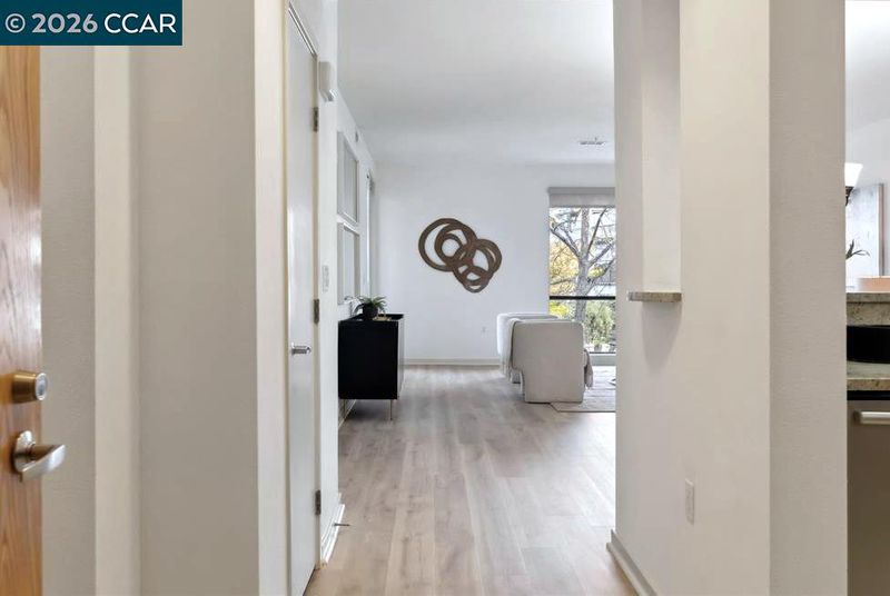 AVAIL 1PM SAT 2-21-26: An Exceptional Residence at The Mercer — Downtown Walnut Creek’s Premier Luxury Address.Welcome to one of the most coveted and most private residences at The Mercer, where refined design, thoughtful upgrades, and an unbeatable downtown location converge. This expanded 2-bedroom, 2-bath residence with a bonus area, is among the most sought-after floor plans in the community, offering a noticeably wider and more open layout than standard two-bedroom homes—creating a sense of volume, light, and effortless flow throughout. Equally rare is the home’s exceptional quiet and privacy. Entrance away from neighboring entryways, this residence is uniquely positioned with no adjacent doors nearby—the closest neighboring unit is well down the hallway and around two corners. The result is a level of calm and acoustic separation seldom found in condominium living: no hallway traffic, no slamming doors, and no audible comings and goings. It is a genuinely serene environment that feels more like a private residence than a shared building—an understated luxury that experienced buyers immediately recognize and value. Situated on the first floor as a single-level end unit, the home enjoys a rare and highly desirable orientation. Large windows capture abundant natural light!