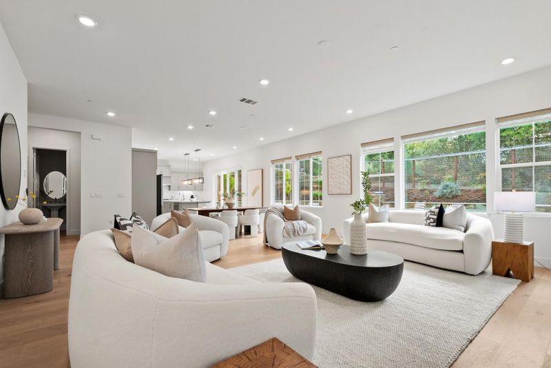 Located in the exclusive Polo Ranch community of Scotts Valley, this 4-year-new luxury residence offers exceptional flexibility on a prime lot directly across from the park with a serene forest backdrop. The main home features a wide foyer leading to an open living and dining great room filled with natural light. The gourmet kitchen showcases a large center island, abundant cabinetry and countertops, stainless steel appliances, and a walk-in pantry. Sliding doors open to a low-maintenance backyard with turf and stone pavers, ideal for indoor-outdoor living. Upstairs, a versatile loft with balcony provides park views and flexible living space. The spacious primary suite includes a spa-like bath and a large walk-in closet. Three additional bedrooms include a junior suite and two bedrooms sharing a hallway bath. A standout feature is the attached ADU, offering interior access from the main home, a separate exterior entrance, and with its own modern kitchen, in-unit laundry, and one-car garage. Ideal for extended family or rental potential. Conveniently located just minutes to Highway 17, with easy access to Los Gatos, Silicon Valley, Santa Cruz beaches, and award-winning Scotts Valley schools, this home delivers a rare blend of luxury, privacy, and flexibility.