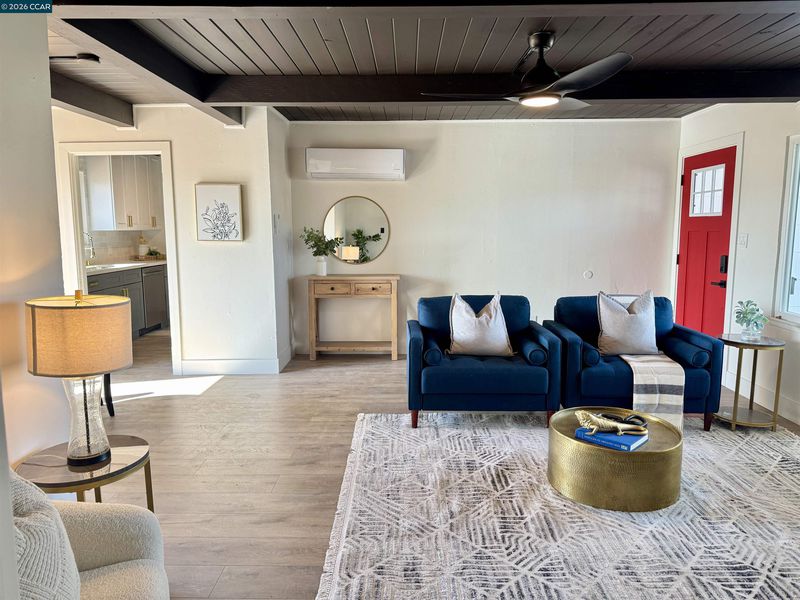 Welcome to your turnkey dream home! This beautifully fully renovated 3-bed, 1-bath residence blends modern design with timeless charm. Step inside to discover an open and inviting layout featuring gorgeous custom kitchen cabinetry, sleek stainless-steel appliances, and luxurious designer fixtures throughout. The home boasts durable, low-maintenance laminate flooring that flows seamlessly from room to room, creating a cohesive and contemporary feel. The heart of the home is the stylish kitchen — perfect for everyday living and entertaining alike — while the living room showcases a cozy fireplace and striking wood beam ceilings that add character and warmth. Enjoy unique views of Buchanan Field Airport right from your gorgeous new deck— an incredible backdrop and daily conversation starter. This home truly has it all: thoughtful upgrades, impeccable style, and a location with unforgettable scenery. Don’t miss your chance to own this one-of-a-kind gem!