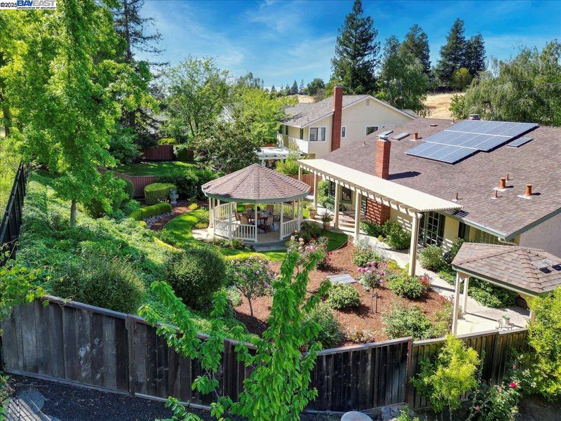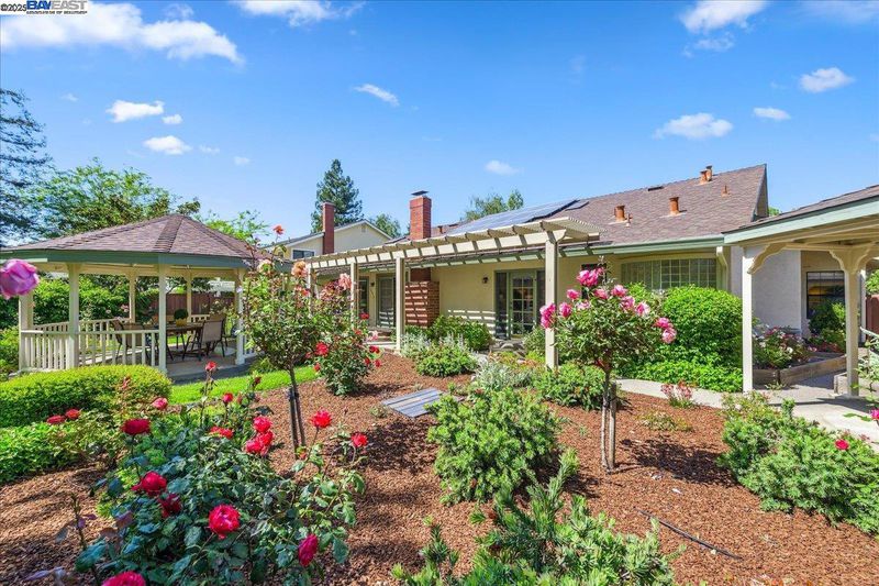 Welcome home to 3126 Arbor Drive in Pleasanton! This one-story, three-bedroom, two-bath, 2297-square-foot home is in move-in condition in the desirable Vintage Hills II neighborhood. It has a beautifully landscaped backyard with award-winning roses from the Pleasanton Rose Show! It has two gazebos, one for dining and one smaller off the primary wired for a spa. 2 Raised vegetable beds ready to plant your garden. The outside has a fresh coat of paint. You will find vaulted ceilings, fresh paint, 2 fireplaces, and a custom wet bar inside the home. A large third bedroom is ideal for a home office. The primary has a walk-in closet, extensive storage in the house, and a large walk-in pantry in the kitchen. 3 car garage with workshop, cabinets, and storage. Newer water heater and rooftop owner-owned solar with 3.225 KW. Close to community park and HOA community pool, and all Pleasanton offers.