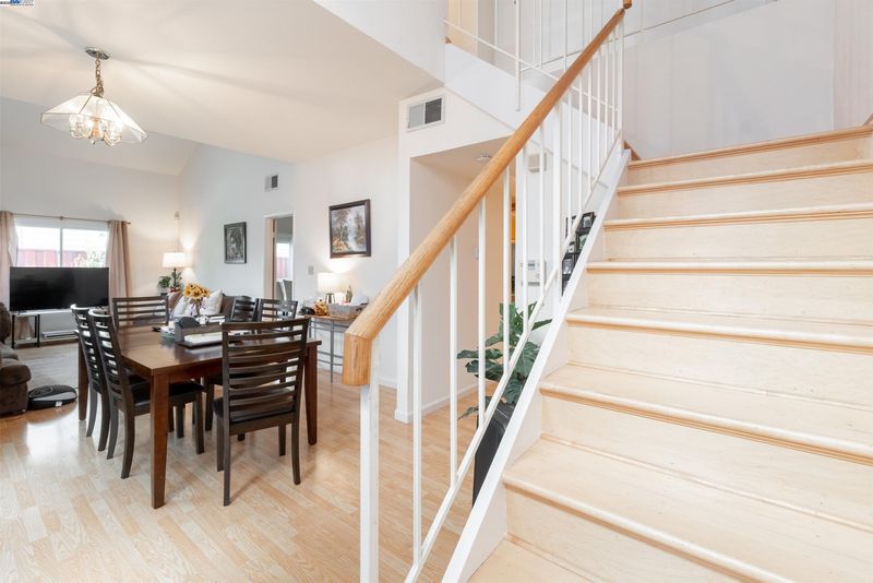 Rarely on the Market 4 Bedrooms 2 1/2 Baths San Lorenzo Village Home...Living Room with Fireplace & Vaulted Ceiling...Dining Area...Roomy Kitchen with Ample Cabinets & Counter Space, Smooth-top Stove plus Vent Hood, Refrigerator, Dishwasher & Boxed Lighting...2 Dining Areas...Half Bath Downstairs...4 Bedrooms & 2 Baths Upstairs...Primary Bedroom with Ensuite Bath with Jetted Tub plus Double Sinks...3 Bedrooms with Vaulted Ceilings...Hardwood Stairs plus Inlaid Hardwood Floors on Landing & Upstairs Hallway...Whole-House Water Filter System...Forced Air Heating & Air Conditioning...Spacious Patio...Easy Access to Freeways, Shopping, Schools &Park Across the Street.
