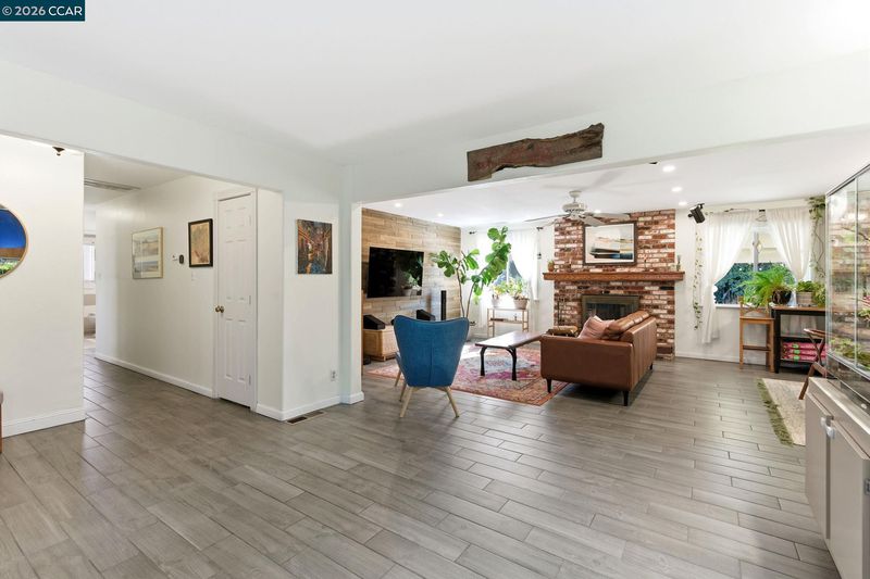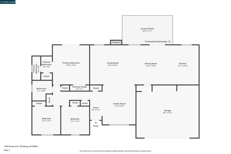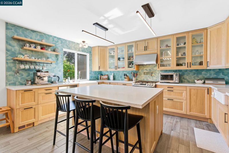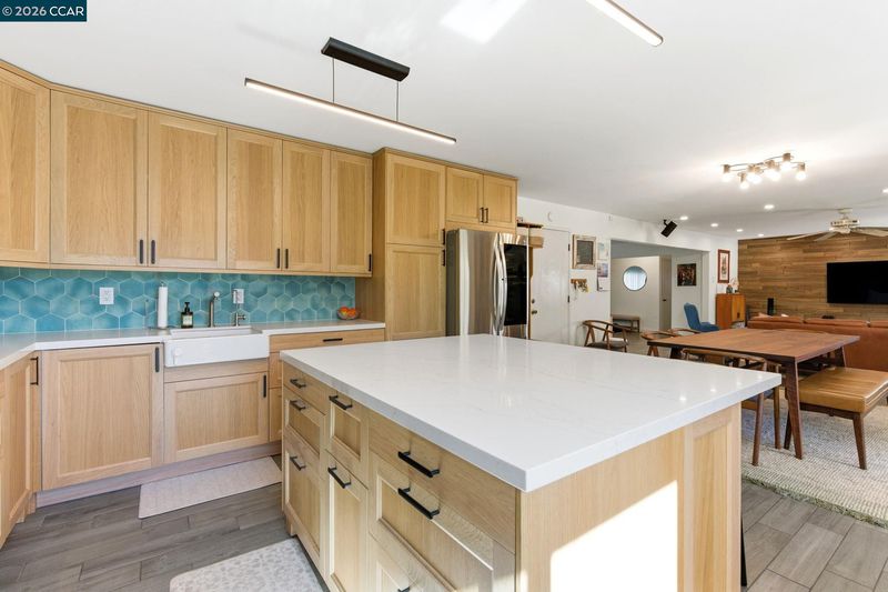 Welcome to this beautifully updated single-level home on a large corner lot in Pittsburg’s desirable Meadowbrook neighborhood! Offering over 1,700sqft of open living space, this 3-bedroom, 2-bath home blends comfort and modern style. The drought tolerant landscaped front yard with a wood gate and arbor creates charming curb appeal. Inside, the foyer opens to expansive living, family and dining areas anchored by a cozy wood-burning fireplace and striking wood accent wall. The dining area features a wet bar, leading to a stunning chef’s kitchen with island breakfast bar, dual sinks, pot filler, stainless steel appliances, quartz countertops and a floor-to-ceiling aqua hex backsplash. Step outside to a versatile backyard with a large partially covered patio, lawn, mature fruit trees, garden beds, firepit and detached workshop — perfect for entertaining or hobbies. The spacious primary suite enjoys abundant natural light, while porcelain tile flooring adds durability and style throughout. The Solar system includes two Tesla Batteries providing energy efficiency and savings. Conveniently located near Buchanan Rd with easy access to Kirker Pass, BART and Hwy 4. A thoughtfully maintained home ready for its next chapter.