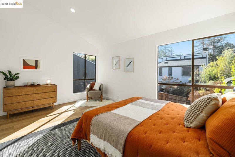 This split-level 3-bedroom, 2-bathroom home showcases classic mid-century geometry, high vaulted ceilings, and an easy, spacious flow. Sunlight moves through the home throughout the day, highlighting a formal dining room, a comfortable living room, and multiple versatile bonus spaces suited for work, play, or quiet retreat. Recent improvements of the property include remodeled bathrooms, an updated kitchen, fresh interior and exterior paint, a new roof, and a generous rear deck and landscaping (all completed in 2025). The flexible 2,173 square foot floor plan* sits on a 5,208 square foot lot* offering an impressive sense of space with purposeful level outdoor areas ideal for entertaining, dining, or cultivating an edible landscape. The result is a warm and welcoming home that blends architectural character with modern livability in a setting enriched by the neighborhood's mature greenery and close proximity to Wildcat Canyon and Tilden Regional Park.