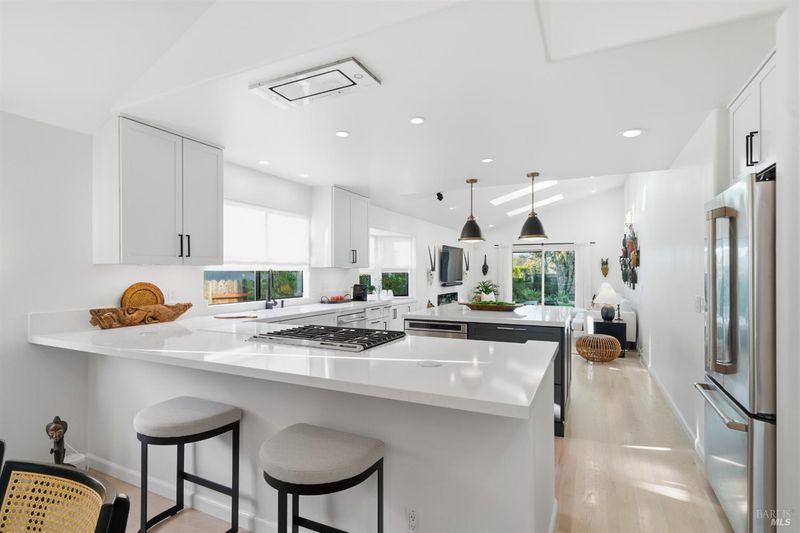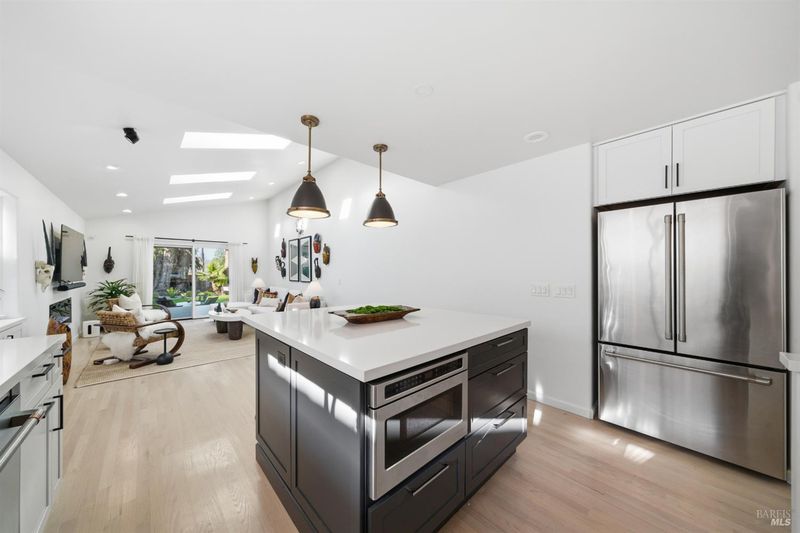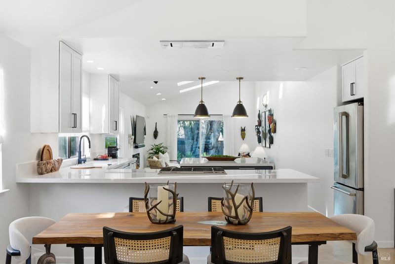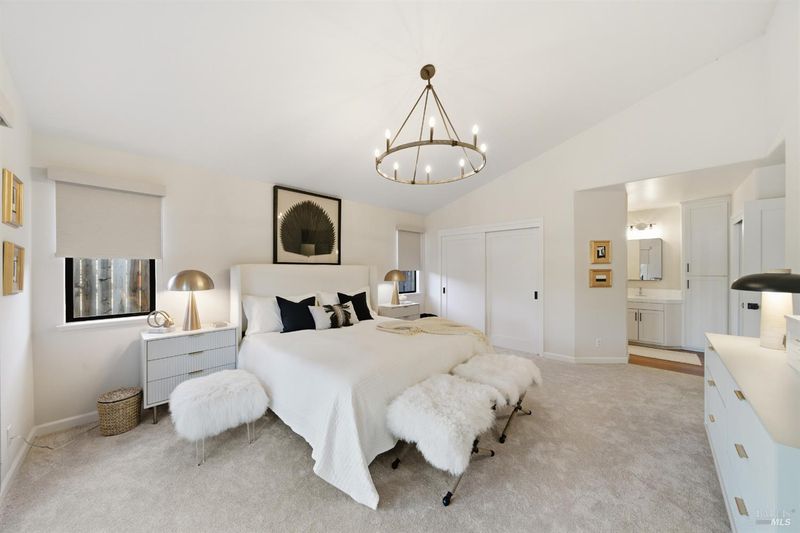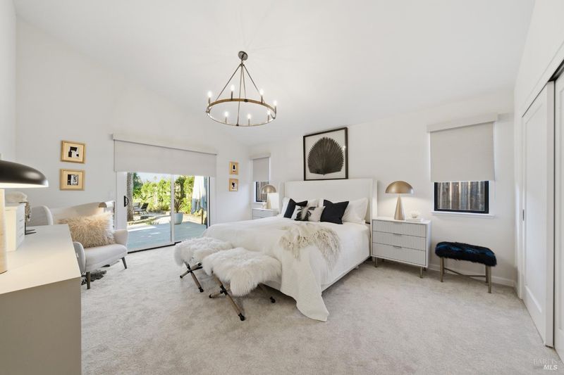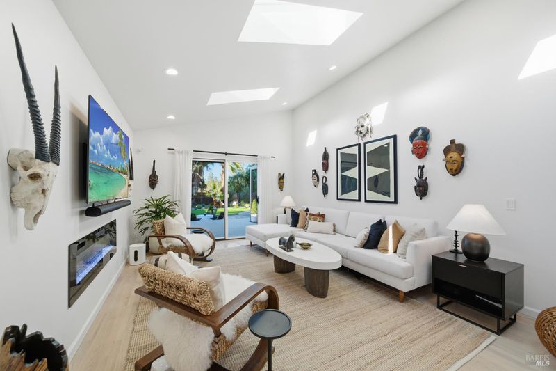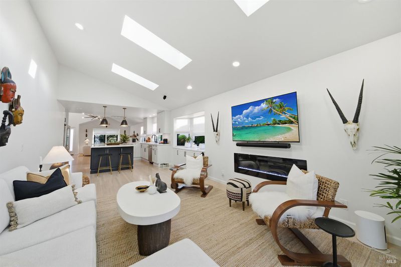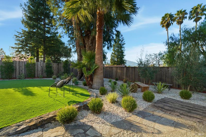 Welcome to an exquisitely renovated modern retreat just minutes from the Sonoma Plaza. This single level home blends elevated design with effortless indoor-outdoor living, offering a rare turnkey opportunity in one of Wine Country's most sought after neighborhoods. Step inside to soaring vaulted ceilings, abundant natural light, and a thoughtfully open floor plan ideal for both relaxation and entertaining. The spacious living area features contemporary lighting, custom stained wood flooring, and a beautifully finished fireplace that serves as an elegant focal point. The chef's kitchen is a true showpiece, complete with a large center island, quartz countertops, custom cabinetry, stainless-steel appliances, and generous counter seating. Flow seamlessly into the adjacent dining and secondary living spaces, each framed by large windows and sliding glass doors that highlight serene garden views. The primary suite offers a calming atmosphere with soft natural tones, plush carpet, and a stylish modern chandelier. Additional bedrooms are bright and versatile, perfect for guests, office use, or extended stays. Outside, the property transforms into a private sanctuary. A spacious deck with a sleek pergola, while expertly designed low-maintenance landscaping features mature trees, gravel pathways, lush plantings, and large turf lawn ideal for low maintenance enjoyment. Whether hosting gatherings or savoring quiet evenings under Wine Country skies, the backyard is a standout highlight. With refined updates throughout, exceptional outdoor living, and an unbeatable Sonoma location, 827 Verano Ave offers the perfect blend of comfort, style, and convenience. A true turnkey gem in the heart of Wine Country.