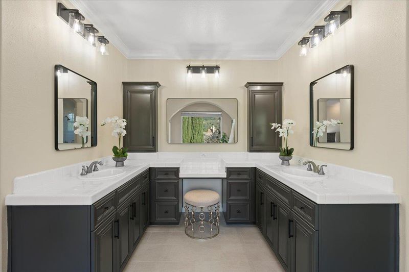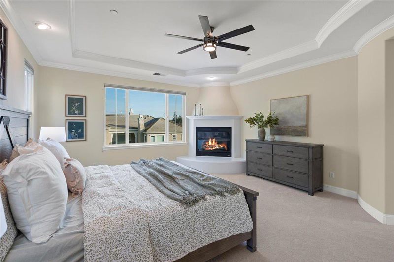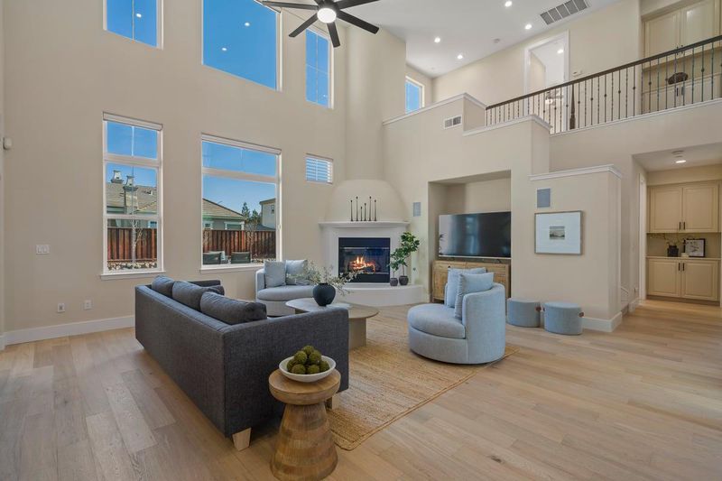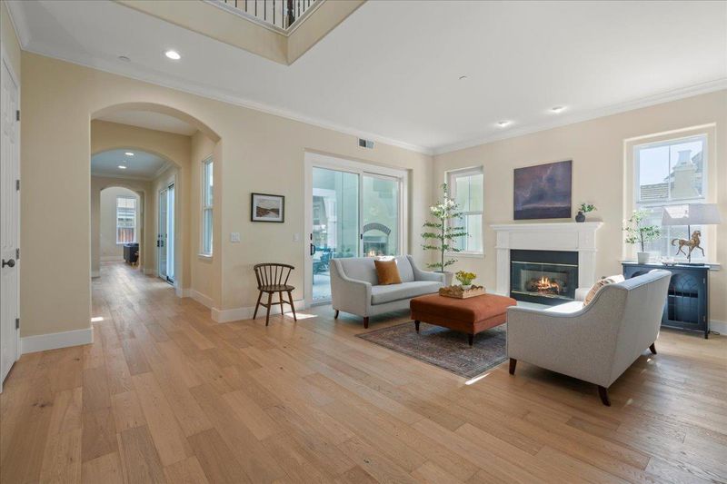 Located in the desirable Alicante neighborhood and adjacent to the community park, this light-filled and beautifully updated home offers an exceptional floor plan ideal for family living and extended guests. The kitchen provides two spacious islands, a large walk in pantry and casual family dining open to the great room. Upgrades include all-new LED lighting and fixtures, new carpet throughout, and new wood flooring on the main level. The main floor features formal living and dining rooms, a spacious home office and a private downstairs suite with ensuite bath, kitchenette with microwave and mini fridge, and access to the rear yard-perfect for guests or multigenerational living. Outdoor spaces are inviting with a private courtyard and office patio with new Renewal by Anderson sliding doors to an outdoor fireplace and loggia and to a private patio off of the office. The rear yard has an outdoor kitchen and raised garden beds. Upstairs the primary suite includes a fireplace, spa-style bath with jetted tub, dual vanities, and a large walk-in closet. An additional ensuite bedroom, two bedrooms with a Jack-and-Jill bath, and a versatile bonus room that could be used as a media room or 2nd family room completes the upper level. A 3-car garage adds convenience and storage.