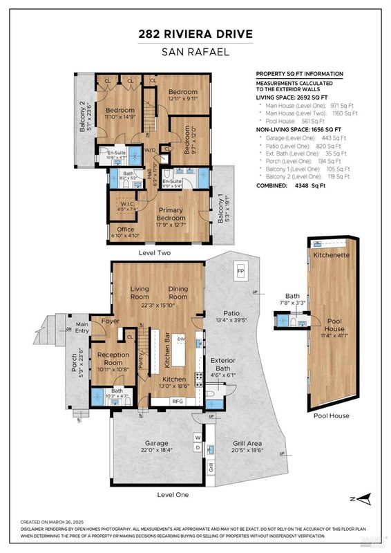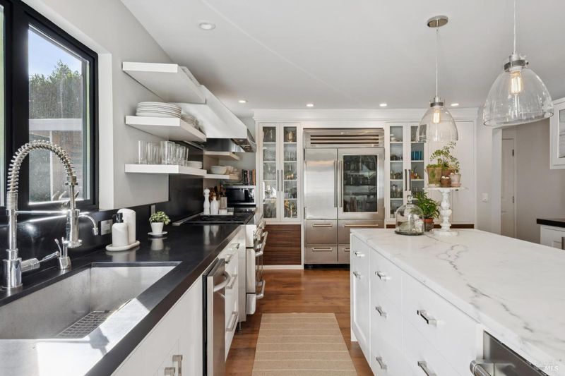 Welcome to paradise! Sophisticated, sun-filled, and beautifully remodeled, this exceptional residence in Peacock Gap delivers a seamless blend of modern design and relaxed California living. Thoughtfully remodeled with both style and function in mind, the property showcases elevated finishes, expansive living spaces, and a resort-inspired outdoor experience. The main level unfolds with an airy open-concept layout where living and dining areas connect effortlessly to a stunning chef's kitchen. Anchored by an oversized Calacatta marble island and outfitted with premium appliances, the space is equally suited for everyday living and elevated entertaining. Upstairs, four bedrooms and three updated baths provide comfortable separation and privacy, along with a conveniently located laundry area. The primary suite feels like a private sanctuary, complete with a walk-in closet, dedicated office nook, spa-like bath with dual vanities, and a serene deck ideal for morning coffee or evening unwinding. Beyond the interiors, the backyard transforms into a true extension of the home designed for year-round enjoyment. A sparkling pool, outdoor kitchen, fire pit, and dedicated pool bath create an inviting atmosphere for gatherings both large and small. At the rear of the property, a striking contemporary pool house with oversized Fleetwood sliding doors offers remarkable flexibility as guest quarters, fitness studio, home office, or media lounge. Unlike any ADU you've ever seen! 282 Riviera - where sophistication, comfort and fun come together effortlessly. Don't miss it!