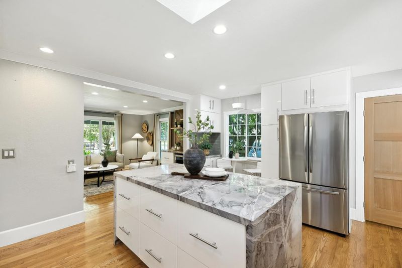 Gorgeous remodeled home near the desirable Rose Garden & Santa Clara neighborhoods. Large floor plan: 4 Beds, 3 Full Baths, 2,600+ SF of beautiful open concept living. All set on a rare 9,000+ SF corner lot. Stunning family room w/vaulted ceilings, striking beams, skylights & warm fireplace. A stylish bar-height counter bridges the family room & kitchen for casual dining & entertaining. Dreamy chef's kitchen w/large island, quartz counters, sleek cabinets & premium appliances. Wonderful front living room highlighted by a designer bar w/custom herringbone wood wall display, floating shelves & wine fridge. Lovely upstairs primary bedroom w/luxe bathroom. An additional upstairs guest bed w/built-ins, desk & full bath. Two downstairs beds w/completely remodeled full bath. The layout flows seamlessly to a backyard that feels like a private retreat, perfect for relaxing by the pool & hosting friends under the palms on warm evenings. Other highlights: hardwood floors, solar, central AC, two-car garage & laundry room. Amazing central location near freeways, Caltrain & SJ Airport. Moments away from great shopping, restaurants & entertainment on The Alameda, Santana Row & Valley Fair. If you're looking for a turnkey home w/great size in an amazing neighborhood, Heatherdale is your gem.