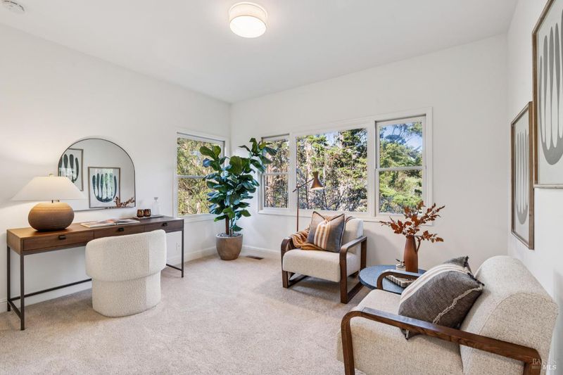 Nestled in desirable Homestead Valley, this light-filled 5BD/4BA residence offers privacy, natural beauty, and effortless indoor-outdoor living. Enjoy views of Mt. Tamalpais and Homestead Valley from nearly every room, complemented by vaulted ceilings and expansive windows that flood the home with natural light. The recently remodeled kitchen features new cabinetry, countertops, appliances, and designer lighting, and flows seamlessly into the family and dining rooms. French doors open to a spacious backyard with oversized fire pitideal for entertaining and relaxation. The primary suite is a true retreat with two walk-in closets, en-suite bath, and private balcony overlooking the backyard. Four additional bedrooms offer flexible space for guests, home offices, fitness, or additional living areas. Additional highlights include abundant storage, two-car garage, updated lighting throughout, and exceptional privacy. Just minutes from Stolte Grove, Dipsea and Muir Woods trails, and with easy access to downtown Mill Valley. Offered for the first time by its original owner, this special property presents a rare opportunity in one of Mill Valley's most coveted neighborhoods.