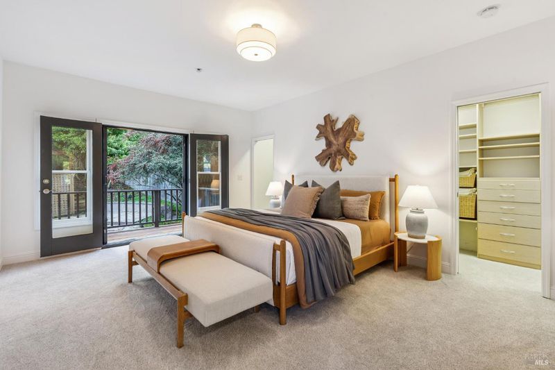 Please do not park in the driveway. Park on the street. - Nestled in desirable Homestead Valley, this light-filled 5BD/4BA home offers privacy, scenic views of Mt. Tamalpais, and seamless indoor-outdoor living. Vaulted ceilings and expansive windows fill the home with natural light, while the recently remodeled kitchen flows into open family and dining spaces. French doors lead to a spacious backyard with an oversized fire pit, perfect for entertaining. The primary suite features two walk-in closets, an en-suite bath, and a private balcony. Additional highlights include ample storage, a two-car garage, and proximity to hiking trails and downtown Mill Valley.