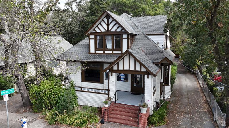 This charming well located converted office is sited on a lrge lot with ample parking. The interior features original woodwork and hardwood floor throughout most of the bdg. There are 3 bath and 3 plus bdrms and a small kitchen. A large entry plus a camelback living room and dining room. Ramp access in the back