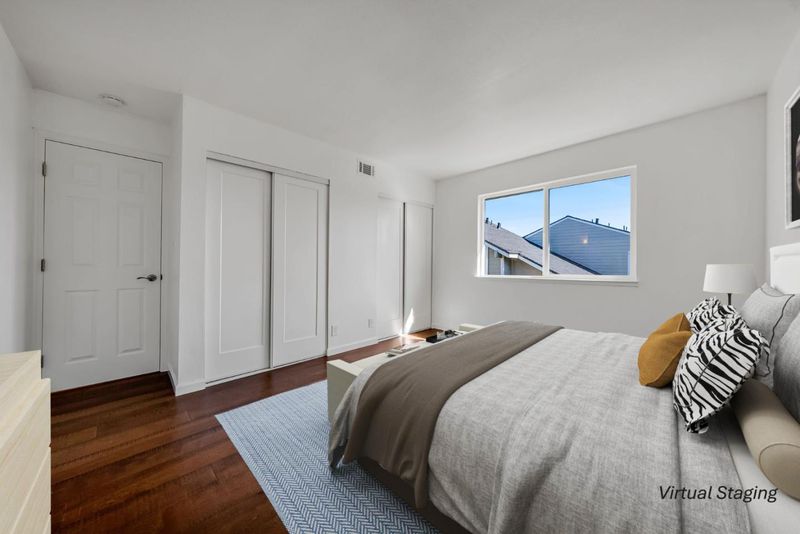 Welcome to a home that makes daily living feel effortless in the heart of Foster City. Step inside and you're met with vaulted ceilings, an airy openness that invites you to slow down, breathe, and settle in. The living room with its cozy fireplace and seamless flow to the dining area and patio creates the perfect backdrop for relaxed evenings, weekend brunches, and gatherings that stretch late into the night. The kitchen is made for real life, cooking meals, chatting with friends while dinner simmers. The downstairs bedroom offers flexibility for the way people live today whether it's a home office, creative space, or a welcoming guest room. Upstairs, the two sunlit bedrooms offer peaceful retreats, each framed by large windows that bring in the soft glow of morning light. The full bathroom with double sink vanity makes busy mornings smoother, and the conveniently located laundry keeps everything within easy reach. Beyond the front door, lifestyle truly shines. The complex borders a serene lagoon, where morning jogs, evening strolls, and quiet moments by the water become part of your daily rhythm. If you're seeking a home that blends comfort, convenience, and the signature Foster City lifestyle, this gem delivers it beautifully. Virtual staging for illustration purposes.
