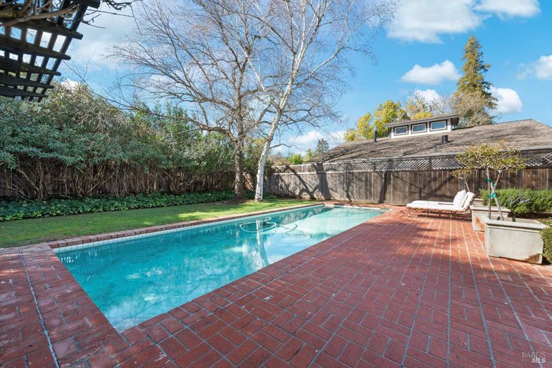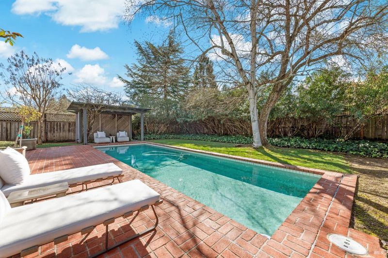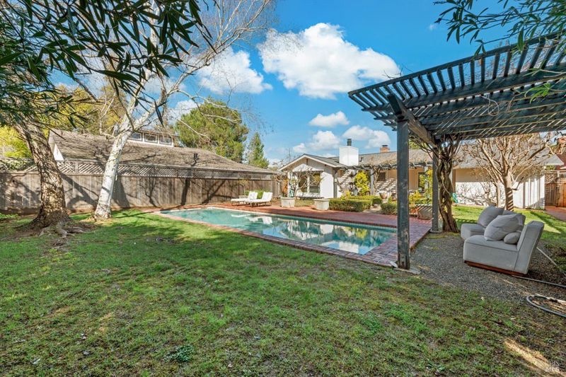 Located on the sought-after west side of St. Helena, this inviting 3-bedroom, 2-bathroom single-level residence offers effortless Napa Valley living with timeless character and thoughtful updates. Designed for both relaxation and entertaining, the home features two wood-burning fireplaces, creating warm, welcoming spaces in both the living and gathering areas. The remodeled kitchen blends style and functionality, while plantation shutters add classic elegance throughout. Step outside to a private setting highlighted by a pool, pergola, and brick courtyard, ideal for al fresco dining and enjoying wine country's indoor-outdoor lifestyle. A dedicated outdoor dining area extends the living space, perfect for hosting family and friends. Inside, hardwood floors in the living room enhance the home's charm, while the single-level layout provides comfort and convenience. A wonderful opportunity to enjoy the beauty, ease, and sophistication of life on St. Helena's coveted west side.