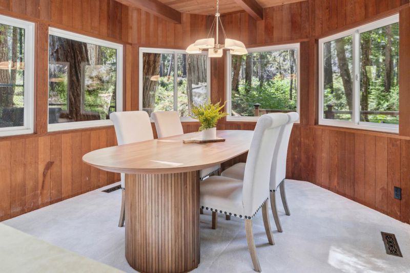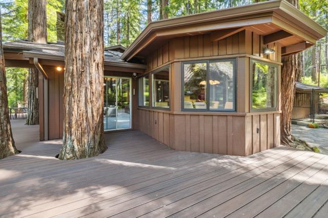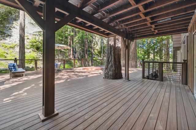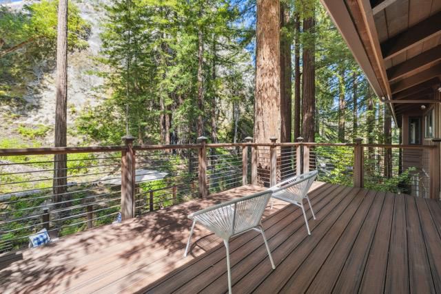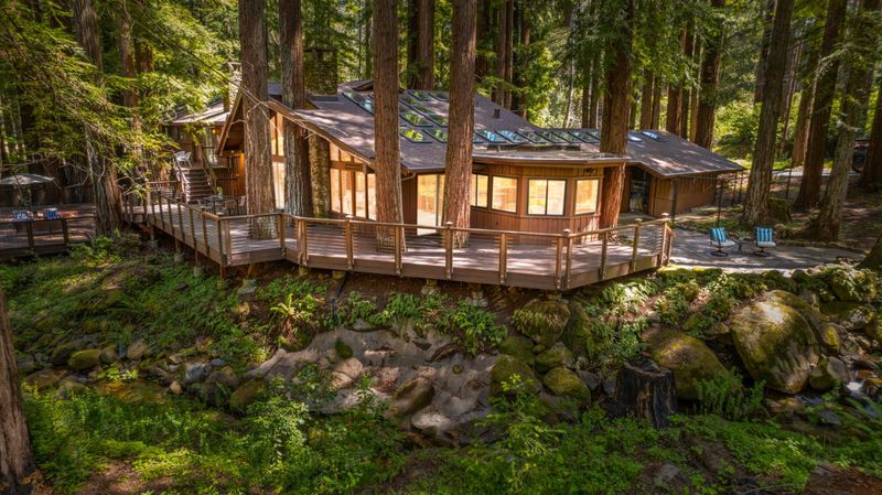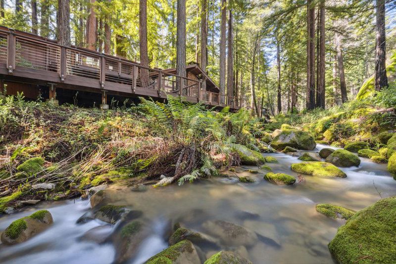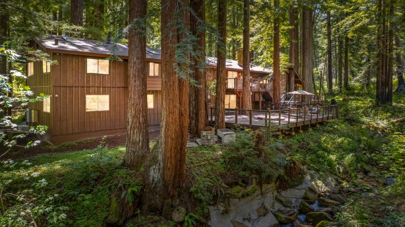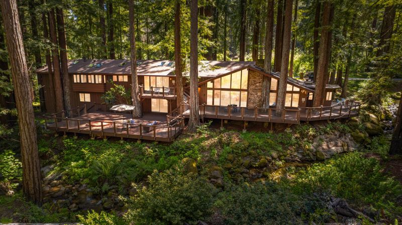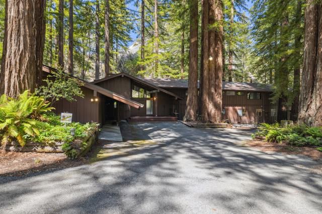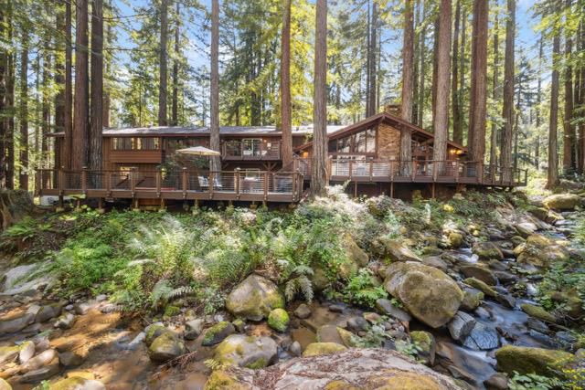 Escape to your private resort-style retreat nestled in the majestic redwoods w/ Jamison Creek just right outside your door. This expansive 5-bedroom, 4.5-bath estate offers over 4,500 sq ft of luxurious living space featuring soaring open-beam ceilings, skylights, & large windows that flood the home with natural light while showcasing stunning forest views. Enjoy cozy evenings by the stone fireplace or entertain guests in spacious living areas, blending rustic elegance w/ modern comforts & high-end finishes. Venture out onto the oversized deck to soak in peaceful creekside views with no neighbors in sight, just tranquil forest surroundings and the soothing sounds of the creek. Located on a paved, county-maintained road, the property offers easy access while maintaining a true sense of privacy and seclusion. Just minutes from Boulder Creek Golf & Disc Golf Club, Big Basin Redwoods State Park, and the charming shops and restaurants of downtown Boulder Creek. Plus, you're only a scenic drive from the beaches of Santa Cruz and the tech hubs of Silicon Valley. Whether relaxing in your private hot tub, sipping morning coffee on the deck, or hiking nearby trails, this home offers a rare and exceptional blend of privacy, luxury, and nature.