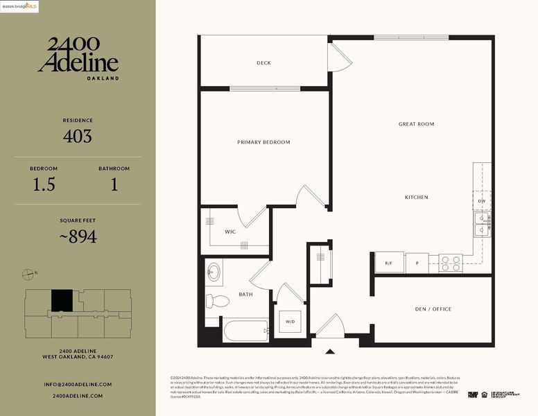Brand New, top floor, 1BR + Den condo. Gorgeous Kitchen, Solid Surface Counter Tops, Central Heat and A/C, In-Unit Laundry. Gated parking, FHA Financing Available With as Little as 3.5% Down. 2400 Adeline is 75% Sold Out, don't wait.