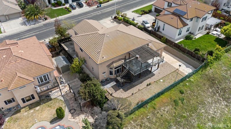 Introducing this grand luxury residence at the Black Diamond Estate. Built in 2002, this stunning 6-bedroom, 4-bathroom mansion spans 3727sq.ft. showcase tile flooring, soaring ceilings, and a light filled great room seamlessly integrating, the living, dining, kitchen, and backyard access. The chef kitchen is an entertainer's dream boasting an oversize island with beautiful stone countertop, professional Thermador appliances, custom refrigeration, and pantry closet. At the main level, the primary suite overlook the canyon with high ceilings. The primary bathroom includes two walk-in closet, double sinks, and a luxurious tub and shower. In addition, it features a guest bedroom and laundry room with Kenmore appliances. The upper-level features three spacious bedrooms, a full bath with shower over tub, and an ensuite with spacious bathroom with shower. The rear yard features a custom covered patio with an upper level observation deck perfect for entertaining and relaxing. With three car garage, spacious courtyard, and a side gate that allow RV parking, the property is privately located near the golf course. A timeless investment designed to be cherished for generations.
