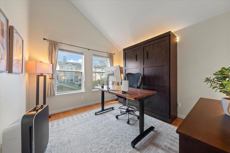 Welcome to 105 Village Circle, one of the premier 3-bedroom, 2.5-bath homes in the Village Highlands community. Ideally situated near UCSC, Westlake Elementary, and Westlake Park, this nearly 2,000-square-foot residence offers a smart, functional layout with excellent separation of space. A welcoming foyer opens to a spacious living room and formal dining area, along with a convenient powder room. The heart of the home is the open-concept kitchen and family room, featuring generous storage and newer appliances that are perfect for everyday living and easy entertaining. Step outside to a low-maintenance backyard that offers plenty of sunshine and a peaceful retreat. Upstairs, you'll find three bedrooms with soaring cathedral ceilings, including a spacious primary suite with a walk-in closet and an ensuite bath with dual-sink vanity. Additional highlights include a built-in desk, state-of-the-art air-conditioning system with enhanced air filtration and updated ductwork, bamboo flooring throughout, and a well-finished two-car garage with attic storage, built-in workbench, and cabinetry. A wonderful home in an exceptional location - don't miss this opportunity!