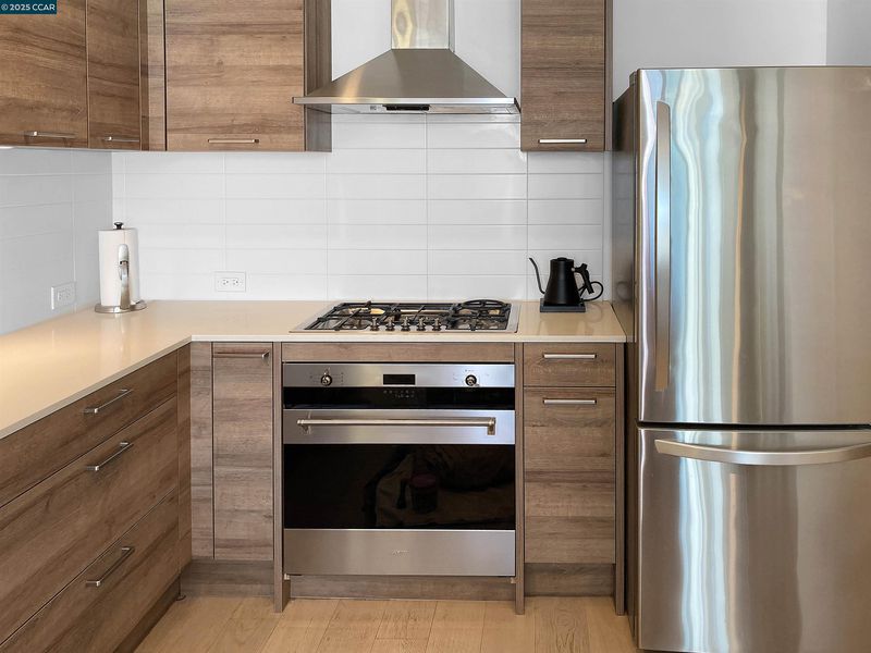 - Dishwasher, Gas Range, Oven, Refrigerator, Counter - Solid Surface, Gas Range/Cooktop, Oven Built-in