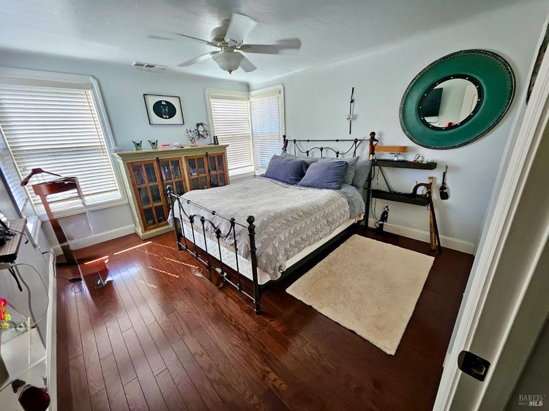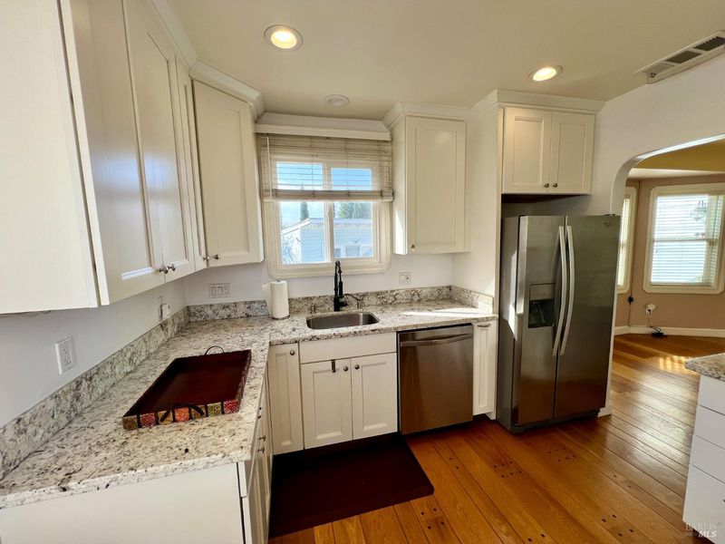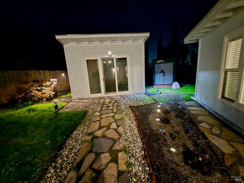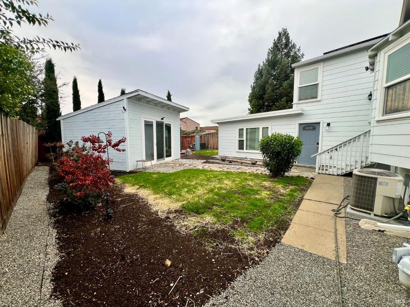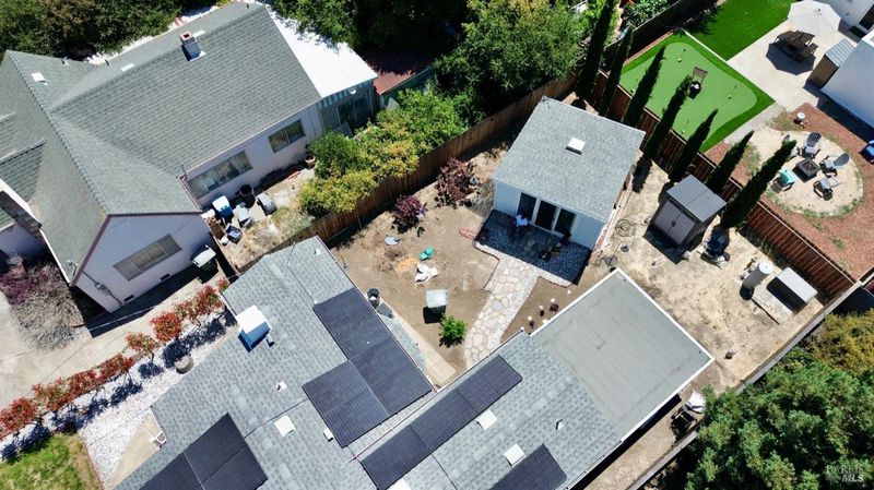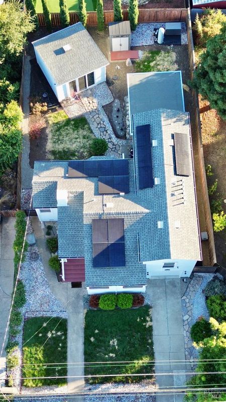 Main Home with a Second Unit Attached and an extra building with electricity detached (possible 3rd unit). This is an amazing opportunity for a wonderful move in ready completely renovated single family residence that also has a separate in law type unit studio + a detached outbuilding that has electric in it as well. Many updates & upgrades. Professionally designed inside & out. 2 living units, both include appliances (refrigerators, ranges, dishwashers, microwaves, garbage disposals) + the washer + dryer in garage are included as well. Gated driveway, fully fenced property, fully landscaped with minimal watering required plus it's on city water/sewer + also has its own well. The solar system includes back up batteries too. Ring security system includes a video doorbell + 6 cameras outside with audio/video feature. Front has 4 new Renewal by Anderson windows + dual blinds that are top of the line. Hardwood floors, granite in main kitchen, stainless steel appliances, self closing cabinets/drawers + much more, top workmanship quality. Tankless hot water heater with Pex plumbing, updated electric, automatic garage door opener, updated lighting throughout, central heat/air in main unit, separate split AC/heat in studio. See picture descriptions for brand/material/features info. Two Homes on 1 Property plus an extra art studio building! Seller is ready to move. Hurry.