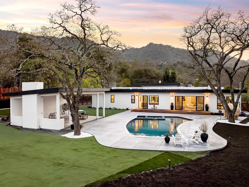 Set on 1.12 acres in the heart of Danville’s highly coveted Westside, this extraordinary single-story newly expanded masterpiece captures sweeping, picturesque views of Mount Diablo while offering the rare convenience of a short stroll to the charm, dining, & boutiques of downtown. Spanning approximately 4,728 sq ft & boasting five bedrooms & 3.5 bathrooms, a separate office, & a sprawling bonus room with sliders to the scenic park-like yard. Relish the luxurious primary bathroom suite with custom dual vanities, a freestanding soaking tub, & a large walk-in shower. At the heart of the home, the chef’s kitchen is both stunning & functional. Thermador appliances, a large center island with quartz countertops, custom cabinetry, a built-in wine refrigerator, & statement lighting. A dramatic wall of windows fully opens to the private courtyard with built-in fire pit, creating a seamless connection between indoor & outdoor spaces. The kitchen flows effortlessly into the adjacent great room featuring soaring ceilings & a striking fireplace. Resort-inspired outdoor living defines the estate’s grounds. A newly remodeled pool & spa are complemented by a built-in cold plunge. 640-sq.ft covered pavilion, with a built-in fireplace. Breathtaking views &expansive grounds. Luxury & convenience!