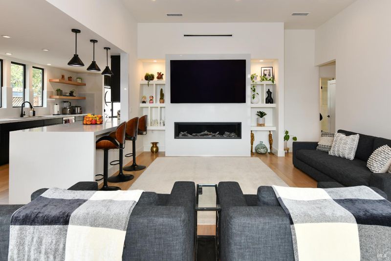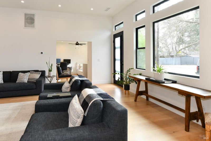 Mid-century elegance, thoughtfully reimagined. 2470 West Pueblo is a refined single-story residence offering 3 bedrooms and 2 baths with elevated finishes throughout. Wide-plank white oak flooring anchors the living spaces, while tiled baths complement the home's clean, modern palette. Soaring ceilings and a statement fireplace create an inviting great-room feel, seamlessly opening to a beautifully remodeled kitchen with expansive quartz countertops, a generous breakfast bar, and an adjacent formal dining area designed for effortless entertaining. The primary suite extends outdoors through French doors to the patio and yardan ideal indoor-outdoor connection. Newer dual-pane metal windows preserve the home's mid-century profile while enhancing comfort and efficiency. A rare and valuable offering: a detached 1-bedroom, 1-bath ADU with its own great room kitchen/living, matching design aesthetic, and a private patio/yardperfect for hosting, extended living, a dedicated office, or rental income. Turnkey Napa living with exceptional versatility.