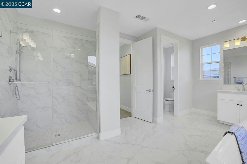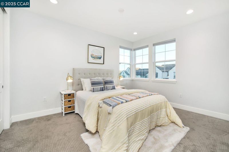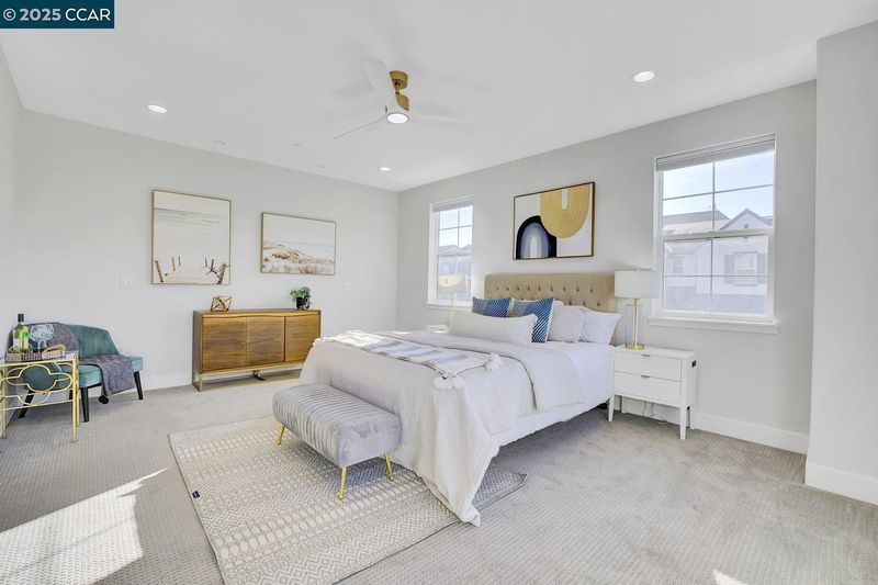 Step into lifestyle living at 105 Laurel Oak Dr. in the newly built Oak Park community. Ideally located near Rooted Coffee, downtown Pleasant Hill, & the stunning new library, this prime lot offers open views on three sides, including Mt. Diablo. The bright great room welcomes you with soaring ceilings, abundant light, & a cozy fireplace. The chef’s kitchen shines with quartz counters, a center island, Thermador refrigerator, beverage fridge, extended buffet zone, & walk-in pantry. Dining area opens to a covered patio and private backyard with gas hookups for effortless outdoor living. Upstairs features a sunny bonus room, two bedrooms, dual-sink bath, laundry with sink, & a spa-like primary suite with dual walk-in closets, gas fireplace, soaking tub, & oversized shower. A main-level guest suite with full bath adds flexibility. Owned solar, multi-zone HVAC, tankless water heater, oak floors, EV charging, & epoxy garage complete this exceptional home. Easy access to BART, I-680, parks, & Poet’s Corner.
