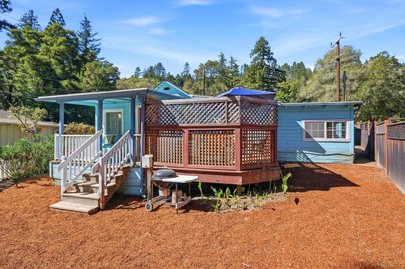 Adorable single level 2 bed/2 bath Mount Hermon country cottage surround by the white picket fence. The sun and brightness dances throughout this home. Freshly painted interior with high ceilings, beautiful etched windows in kitchen with new stainless stove and refrigerator. French doors from the master to your own private enclosed deck, newer skylights through home. Enjoy the evenings sitting on the outside decks or just a Quick walk to the creek over the suspension bridge to the many trails Mount Hermon has to offer. Close to shopping, transportation. parks and so much more. Great commute location,minutes to hwy 17 or hwy 1.