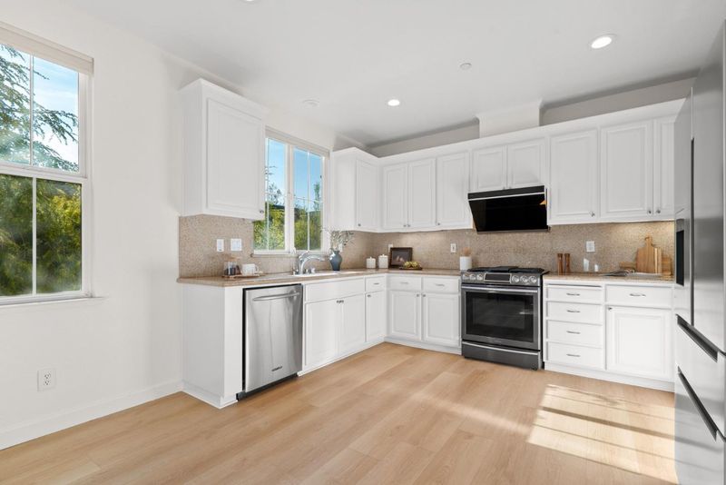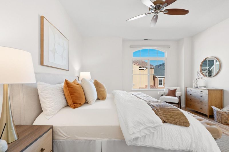 Quiet north west facing location! Thoughtfully designed to maximize natural light, this three-bedroom townhome offers an airy, multi-level layout that feels right the moment you walk in. The inviting living space flows seamlessly into an elevated dining area, creating a sophisticated sense of openness perfect for entertaining. A surprisingly spacious kitchen features a dedicated breakfast nook and enough footprint to easily add a custom center island. Retreat upstairs to a primary suite defined by high ceilings and a luxurious bathroom with a deep soaking tub and separate shower. Modern life is simplified with a fully integrated Google Home system, including smart locks, a Ring doorbell, and a connected thermostat. Situated in the heart of Rivermark, you are just minutes from vibrant shopping at Rivermark Plaza and a quick commute to major tech campuses.