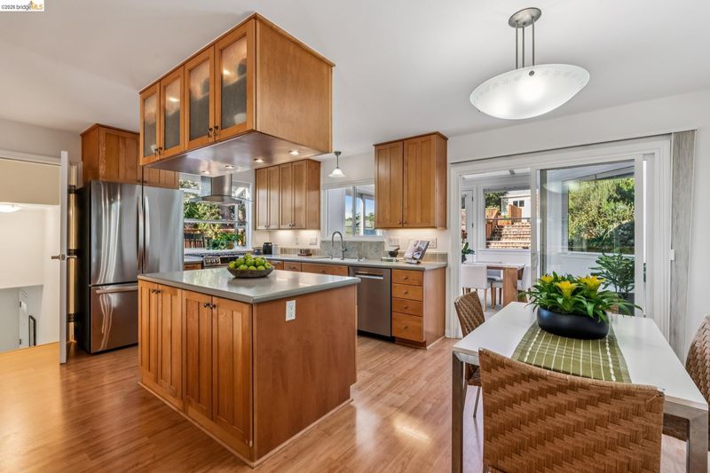 Welcome to 5861 Bernhard, a spacious & inspired 3+ bdrm, 2.5-bath home w/ views of the Bay, SF, Marin & Wildcat Canyon. This thoughtfully remodeled Richmond View residence offers artistic style, natural light & seamless indoor-outdoor living. The open concept main level features a gracious living rm w/ a beautiful arch that elegantly defines the LR & dining areas. Kitchen highlights includes Corian counters, S/S appliances, custom tile, & a generous island. Just beyond the kitchen is a spectacular sunroom designed to bring sunlight & the beauty of nature into the home. 3 sun-filled bedrooms (includes 1 en suite), are complemented by the redesigned baths w/ custom tiles & refined fixtures. A flexible lower-level family room w/ both interior & exterior access is perfect for a home theater, office, or guest retreat. Tucked at the rear of the yard is an amazing studio w/ skylights, lighting, finished walls & beam ceilings, perfect as an art, music or home office space. The expansive yard showcases flagstone patios, multiple decks, & vibrant gardens. Owned solar, newer roof, workshop, storage, a fenced yard & so much more! Near Alvarado & Wildcat Canyon Regional Parks w/ miles of trails + BART, schools, shops & restaurants. Rare, creative, peaceful, the home you have been waiting for.