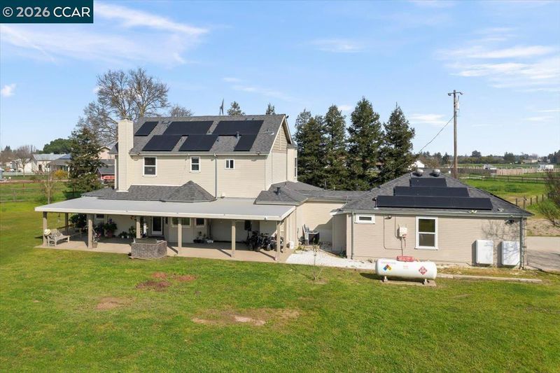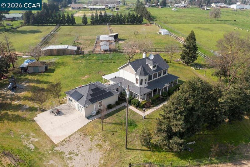 This 3-bedroom, 2.5-bathroom home is ideal for those seeking a peaceful rural lifestyle while still being close to modern amenities. It sits on a stunning 5.04-acre property, perfect for horses, chickens, goats, hobby farming, or simply enjoying the wide-open space with ample room for expansion and personalization. Inside, the home features a thoughtfully remodeled kitchen (2024) and bathrooms (2024), along with new flooring throughout (2024). Additional updates include a newer water heater, AC, and furnace (2025), a new well (2022), and a new roof (2024), providing a blend of modern convenience and a warm, welcoming atmosphere. The interior and exterior have been freshly painted, and new recessed lighting has been installed. The addition of solar panels enhances energy efficiency and offers long-term savings. The outdoor space truly shines with lush green pastures and usable acreage. There is also a 747 sq. ft. ADU that includes 2 bedrooms and 1 bathroom, a new kitchen, and new tile flooring. The ADU has its own mailing address, water heater, and AC unit, making it a self-sufficient space.