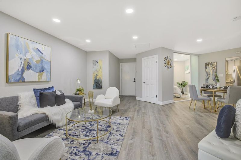 Beautifully remodeled top-level condo nestled in a serene, park-like community. Filled with natural light, this home features a modern open floor plan, recessed lighting, and tastefully updated kitchen and bathroom. Enjoy dual private patiosperfect for relaxing or entertaining. The versatile office space can easily function as a second bedroom with a Murphy bed. Includes one assigned carport plus abundant additional parking for residents and guests. Community amenities offer a clubhouse, heated pool, tennis court, lush greenbelts, and mature Redwood trees. Ideally located near downtown Sunnyvale, Caltrain, and major tech campuses including Apple, Google, and LinkedIn, providing exceptional convenience and connectivity.