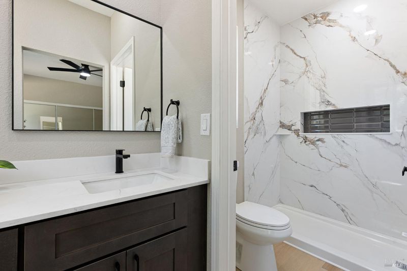 Don't miss your chance to own a stunning home at a new price point. Recently remodeled with luxury upgrades, this home effortlessly blends modern style with comfort. Enjoy peace of mind with a brand-new A/C condenser and low-maintenance front landscaping. Inside, fresh paint, new baseboards and stylish new flooring create a bright, welcoming atmosphere. The fully updated kitchen features sleek quartz countertops and stainless-steel upgraded appliances, perfect for home chefs and entertainers alike. Both spacious bathrooms feel lux with contemporary finishes. The edgy and bold look continues throughout. Step outside to a spacious backyard and a brand new back fence. This large space is ideal for gatherings, play or simply relaxing under the stars. Come see it before it get swooped up!
